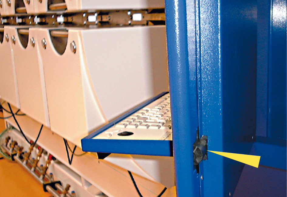 ACE Rotationsbremsen schützen die Tastatur. Um die Maschinentastatur langfristig vor den rauen Bedingungen im Anlagenbetrieb sowie unbefugtem Zugriff zu schützen, wurde sie auf einer schwenk- und verschließbaren Aufnahme installiert. Die an der Schwenkachse eingesetzten Rotationsbremsen FRN-F1 sorgen für ein sanftes und gebremstes Herablassen der Tastatur, ohne die Scharniere zu belasten, und verhindert dadurch Schäden an Tastatur, Aufnahme und Scharnier.